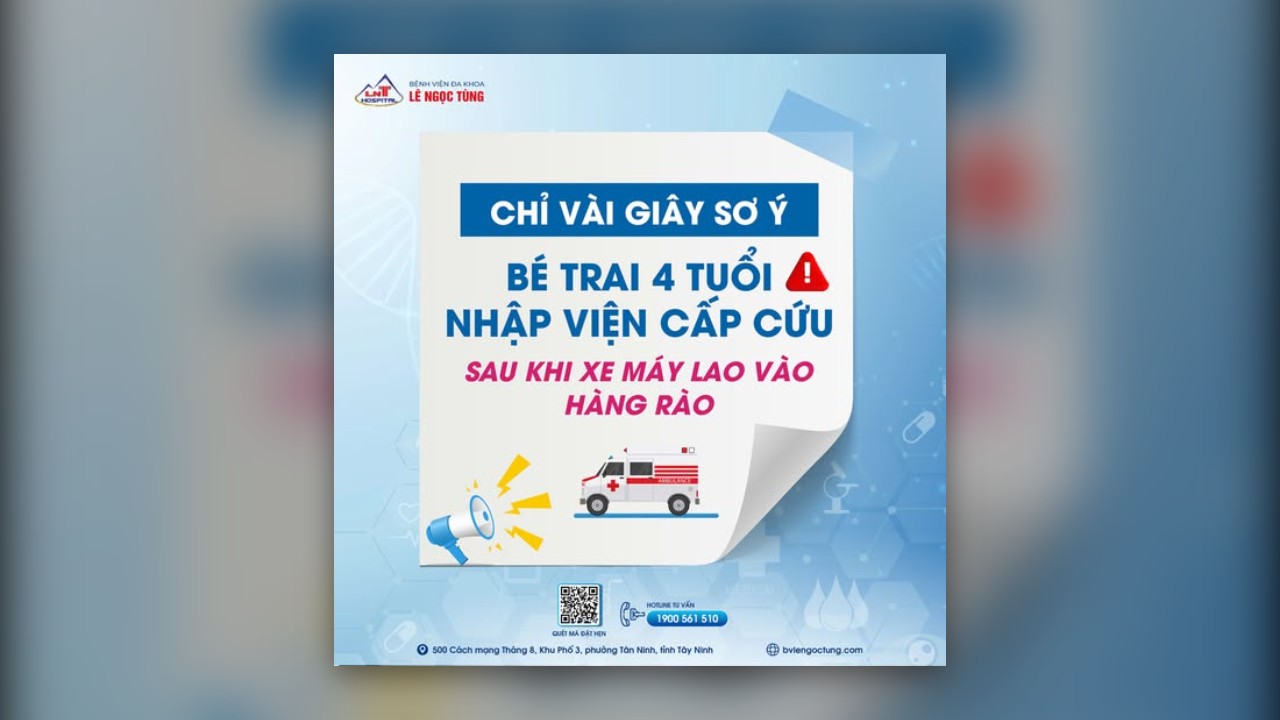 🌿 Vừa qua, Bệnh viện Đa khoa Lê Ngọc Tùng tiếp nhận cấp cứu một bé trai 4 tuổi (ngụ tại Tây Ninh) với nhiều vết thương vùng mặt sau khi gặp tai nạn liên quan đến xe máy đang nổ máy.