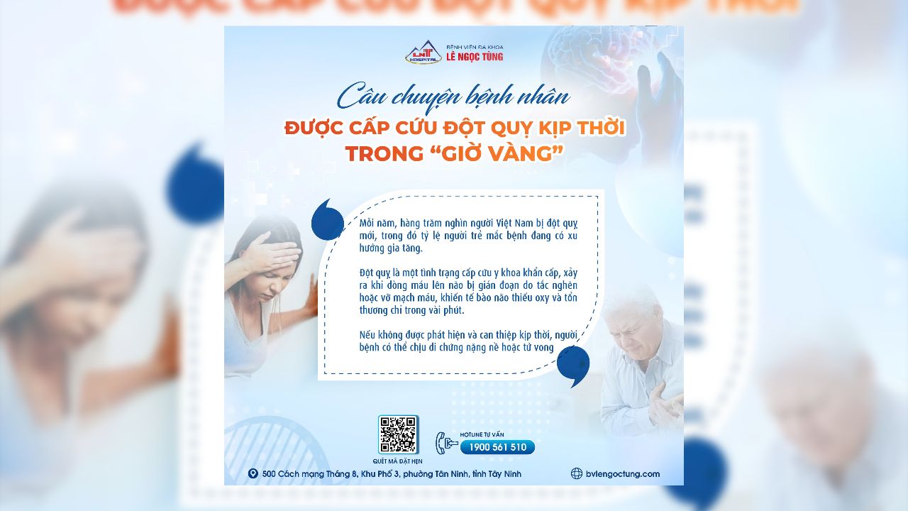 Trong chuyến đi công tác từ Bình Dương đến Tây Ninh, chú Đ.N.V (59 tuổi, ngụ TP.HCM) cùng đồng nghiệp nghỉ trưa tại đơn vị đối tác. Khi đang trò chuyện vu vẻ cùng mọi người, chú bất ngờ xuất hiện tình trạng méo miệng, nói khó, làm rơi điện thoại trên tay, có những dấu hiệu điển hình cảnh báo đột quỵ não cấp.